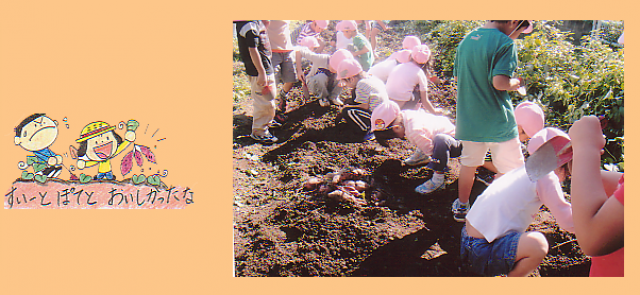 食べ物がどのようにして育ち、食材になるかを子供たちに知らせるために嵯峨野保育園ではたくさんの種をまいています。育ったら料理室を通して子ども達の給食に登場します。